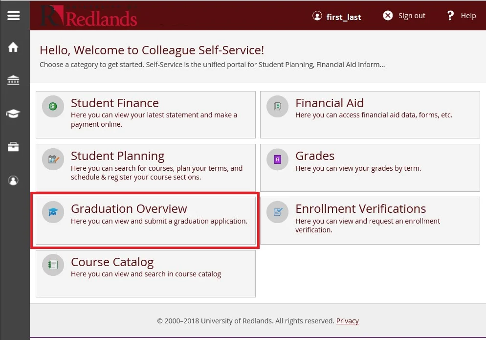If you are unable to resolve any Self-Service issues and need assistance, please email us at registrar@redlands.edu